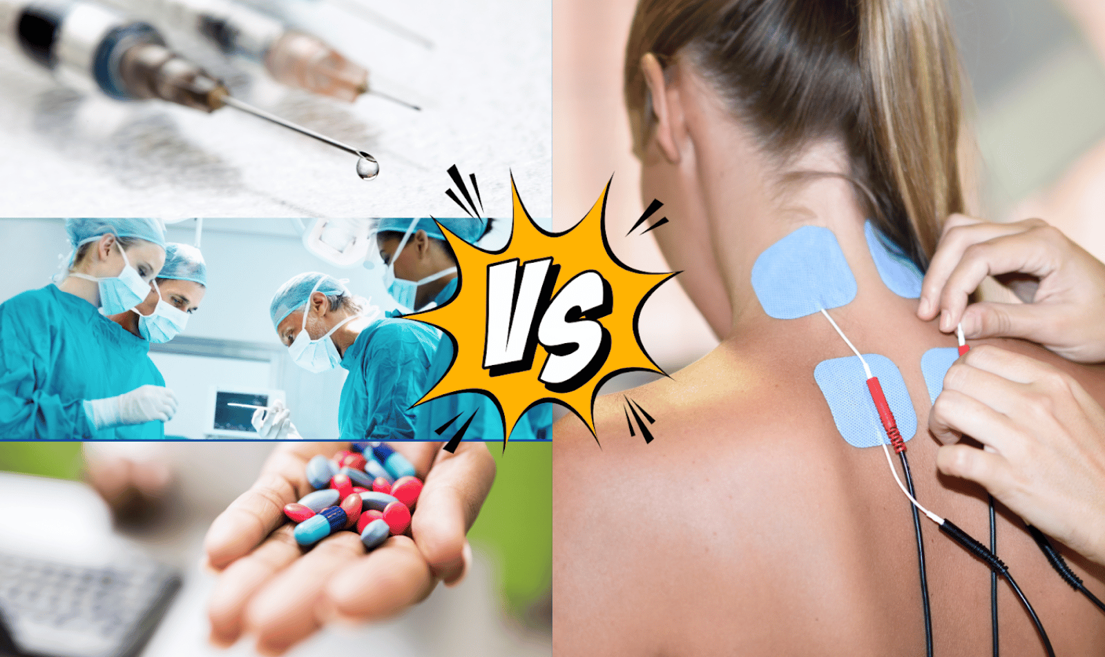Unlike medications or injections that provide temporary relief, NMES actually addresses the root cause by: